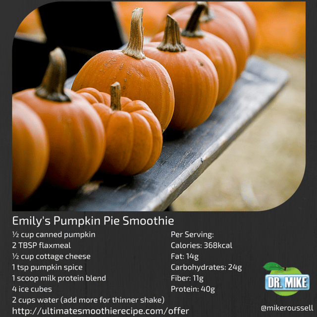 Notes/Instructions: This shake is a favorite around our house and was invented by my wife. Canned pumpkin is loaded with fiber, nutrients, and is available all year round.